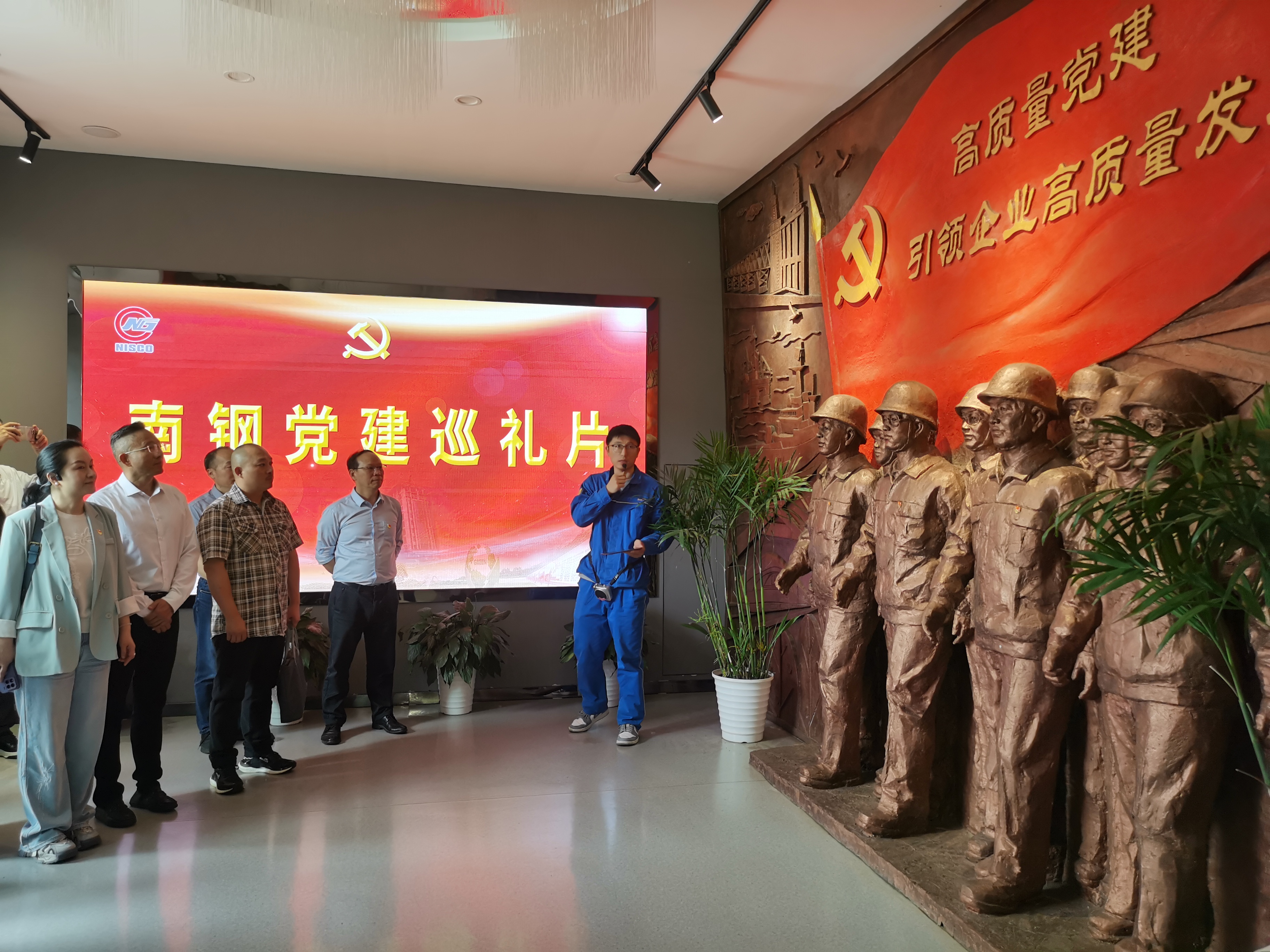 随后,参观团步入南钢党建陈列馆。展馆以时间为脉络,通过图文展板、实物展品、多媒体等多样化形式,立体展现了南钢党建发展历程。在党建引领展区,南钢 “党建领航、组织领先、党员领跑,铸行业‘铁军’队伍” 的 “三领一铸” 党建品牌工程令人印象深刻。南钢党委通过创新党建工作模式,将党支部建到车间、班组,充分发挥党员在企业发展中的先锋模范作用,让党建成为企业发展的红色 “引擎”。