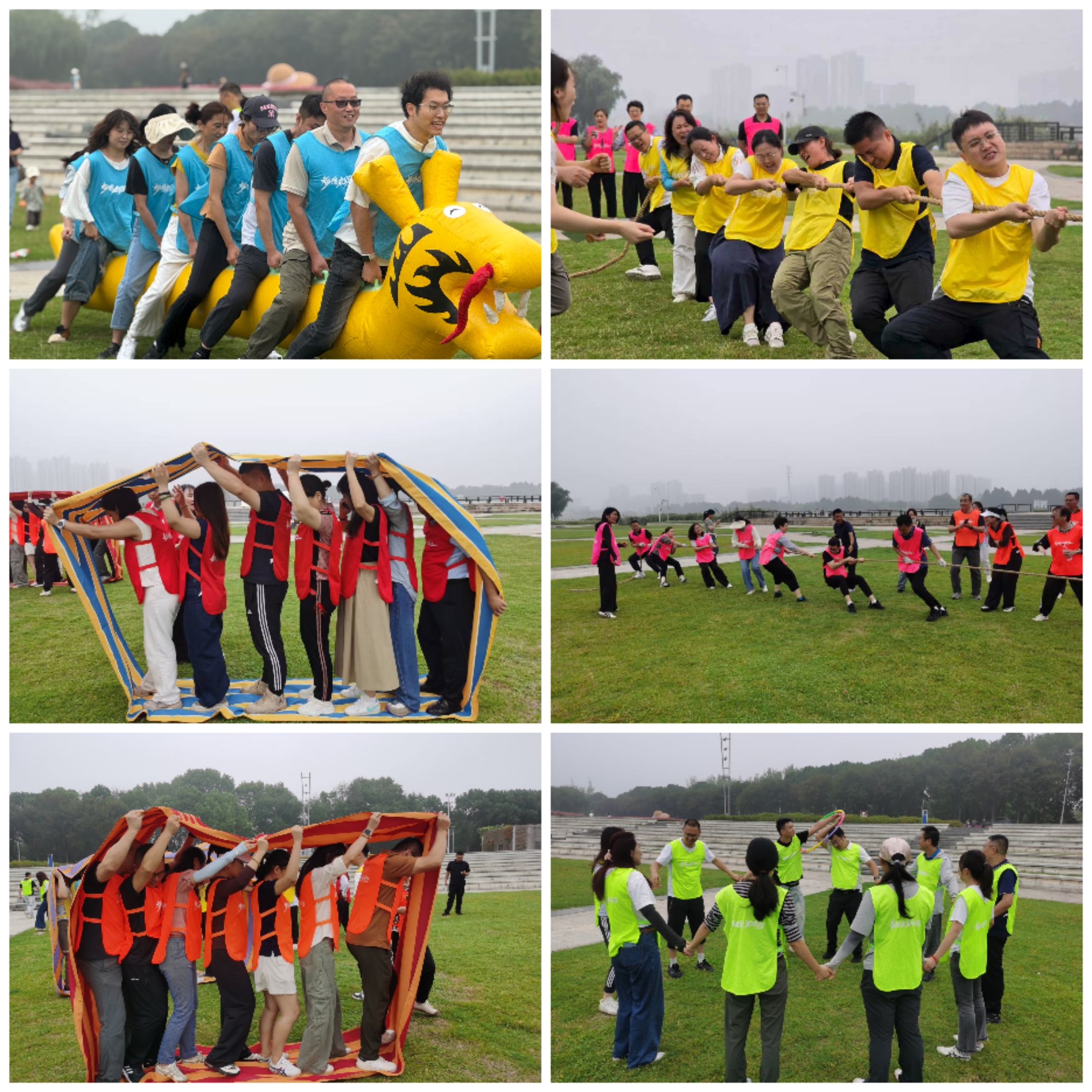 趣味运动会环节精彩纷呈,“一圈到底”“财源滚滚”“龙行天下”及拔河比赛依次开展。“一圈到底”考验肢体协作与沟通效率,呼啦圈快速传递间尽显团队活力;“财源滚滚”项目里,大家踩着道具圈稳步前进,寓意企业发展稳中有进;“龙行天下”中,队员们默契配合操控充气“龙舟”,口号嘹亮向终点冲刺;最后的拔河比赛将氛围推向高潮,队员们紧握绳索、奋力拼搏,无论胜负均收获了友谊与快乐。